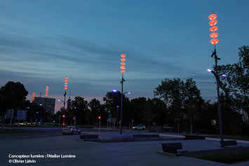 LEC a accompagné la démarche du concepteur lumière en concevant 95 couronnes sur-mesure dressées sur 19 mâts hauts de 16 mètres en tête desquels sont disposées 5 couronnes.
