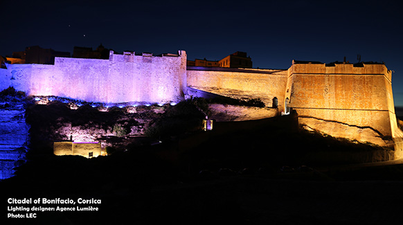 Ab sofort setzen bei Einbruch der Dunkelheit die 200 LED-Projektoren von LEC, darunter der 4660-Corsica, die gesamte Zitadelle in Szene und lassen einen neuen dreidimensionalen Effekt dieses majestätischen Ortes entstehen.