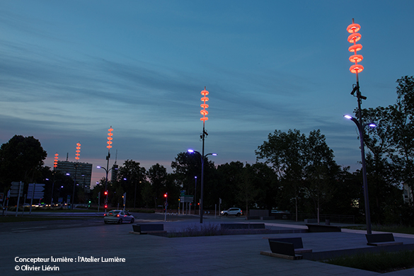The bespoke lighting project imagined by Pierre Nègre of Atelier Lumière immerses the public in a warm atmosphere where colours and movement evolve throughout the day, evoking the constant mobility of the urban world.