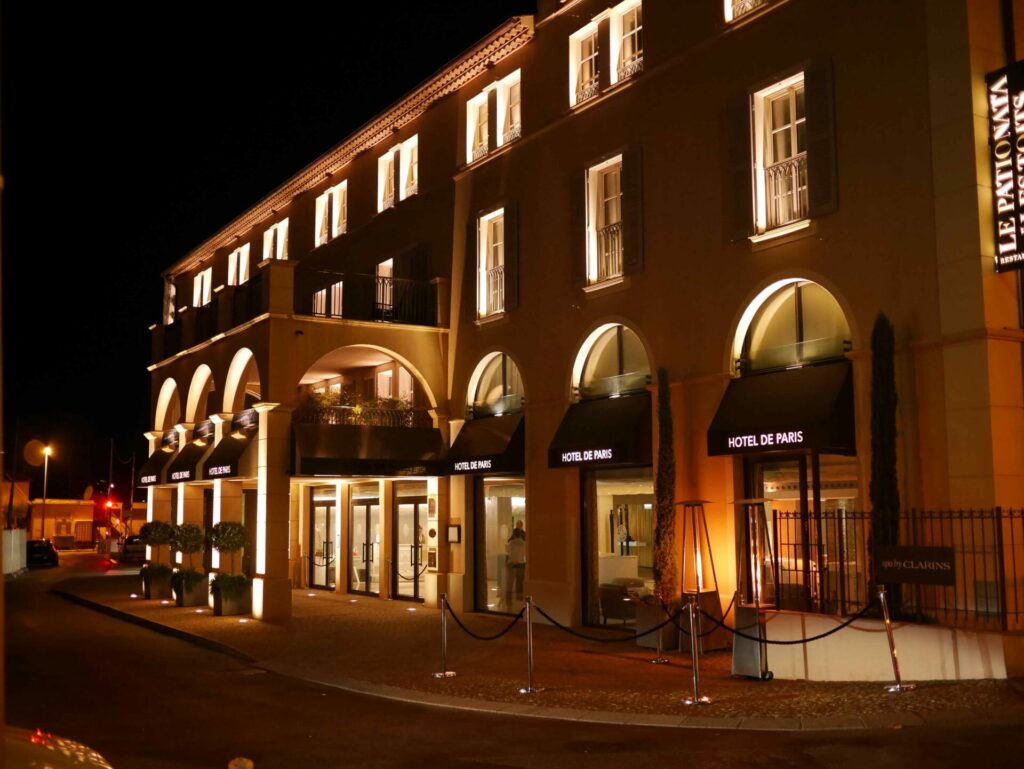 The Hôtel de Paris, located opposite the former famous Gendarmerie of Saint-Tropez, has undergone a complete rehabilitation of its architectural lighting.