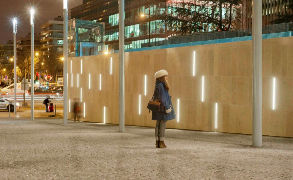 Fifty-six BRUNEI – 5623 units, each 90 cm long and emitting uniform warm white light, were integrated along the side walls of the Boulogne Ascent, creating a reassuring and aesthetic luminous line.
