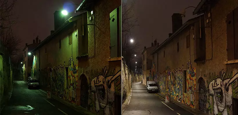 De noche, queríamos crear puntos luminosos sucesivos que ofrecieran un verdadero confort visual y permitieran un rendimiento de iluminación uniforme a lo largo de toda la calle, como un hilo, una guía de luz.