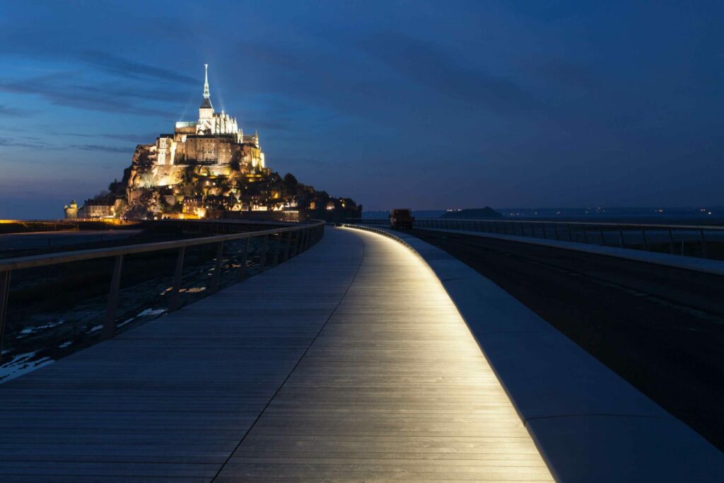 Para la pasarela de acceso al Mont-Saint-Michel, la agencia Dietmar Feichtinger Architectes ha imaginado una solución luminosa discreta, perfectamente integrada en la estructura y capaz de resistir las condiciones climáticas extremas de este sitio insular.