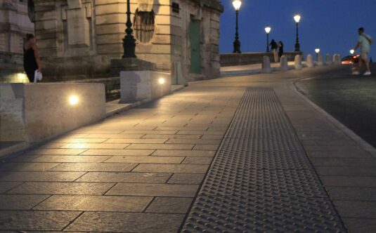 - Les encastrés de voirie pour structurer les parcours en toute discrétion.